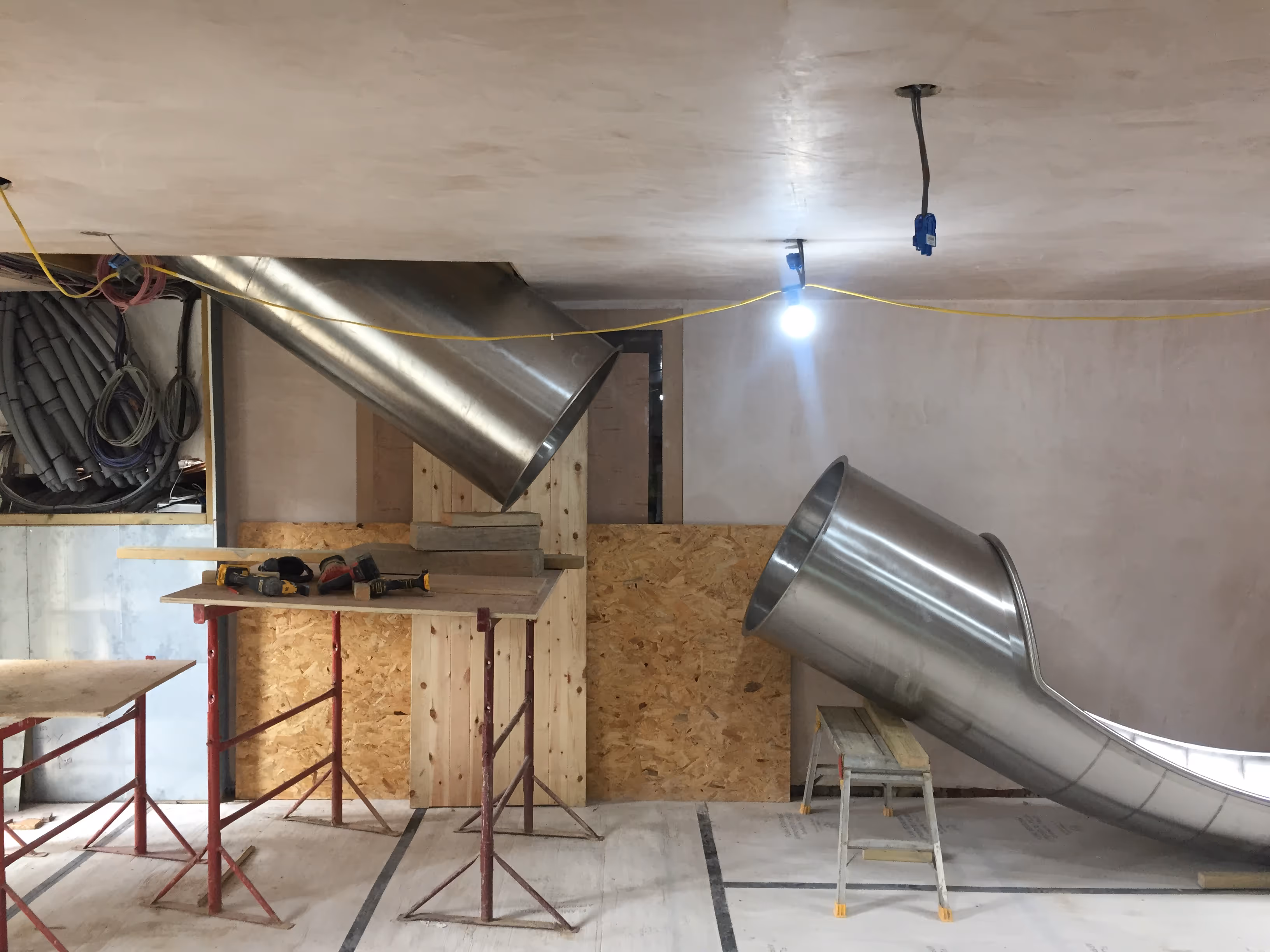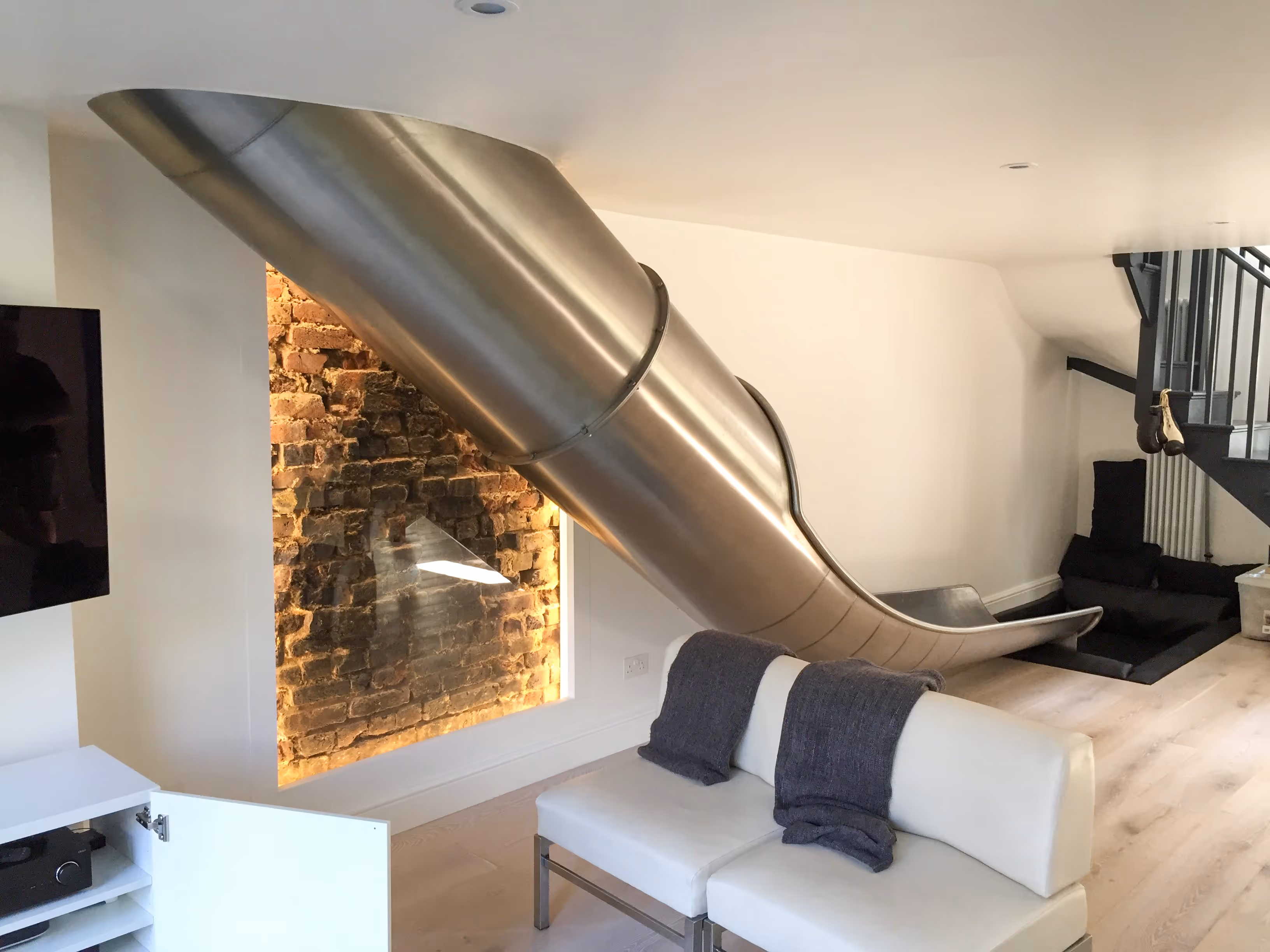 Approached by a London homeowner aiming to blend sophisticated style with a playful twist, we designed and manufactured a 4.9 m-high, 760 mm-diameter stainless steel tunnel slide, complete with a 90° bend to weave through three floors. A sleek dull-polished interior and powder-coated exterior ensure it complements the refined interiors. Custom polycarbonate windows invite daylight in, and a concealed support bracket keeps the design seamless. With tight access constraints, we oversaw every step to get it right first time, and even added a bell at the bottom to know when the coast is clear.