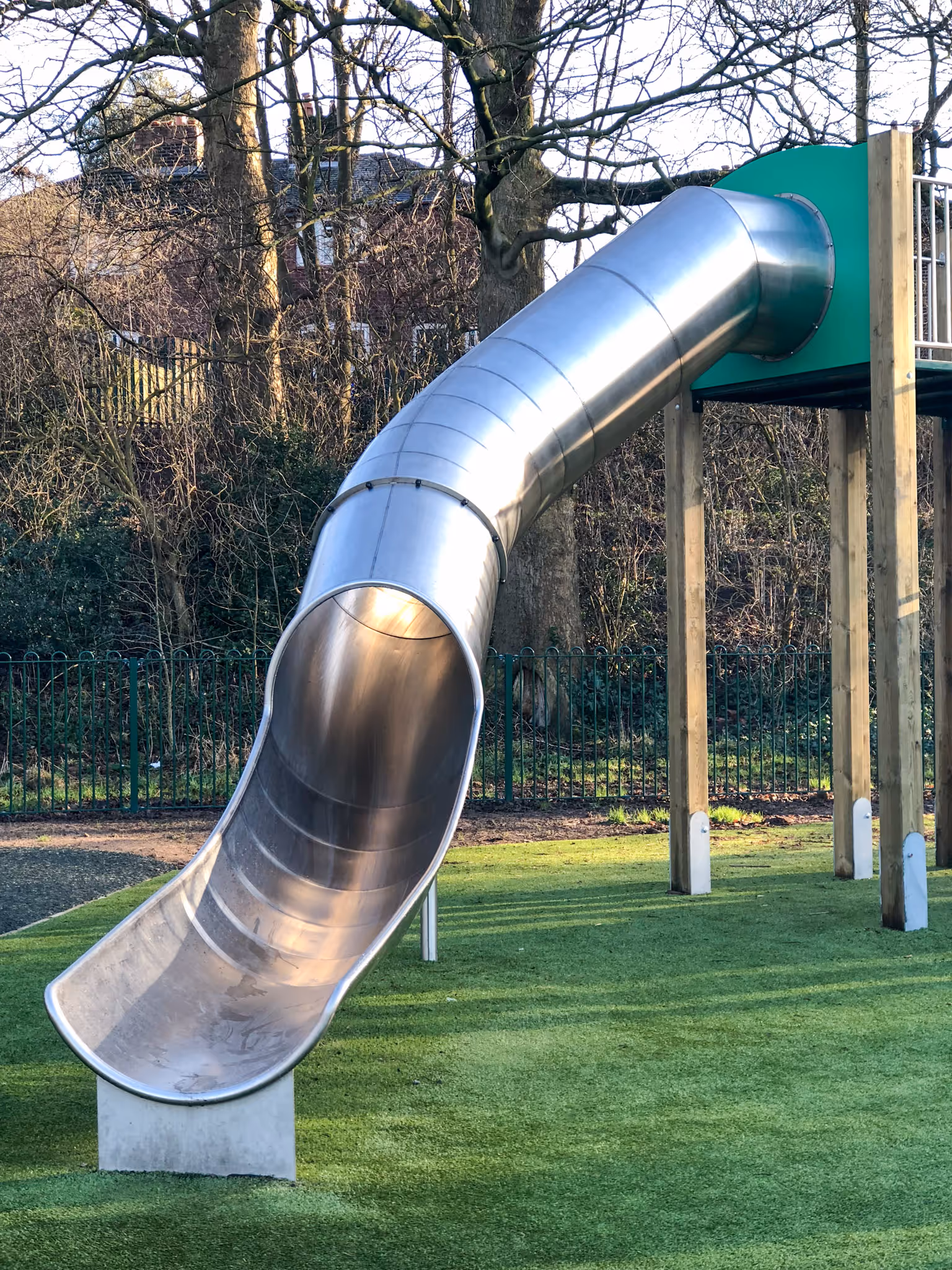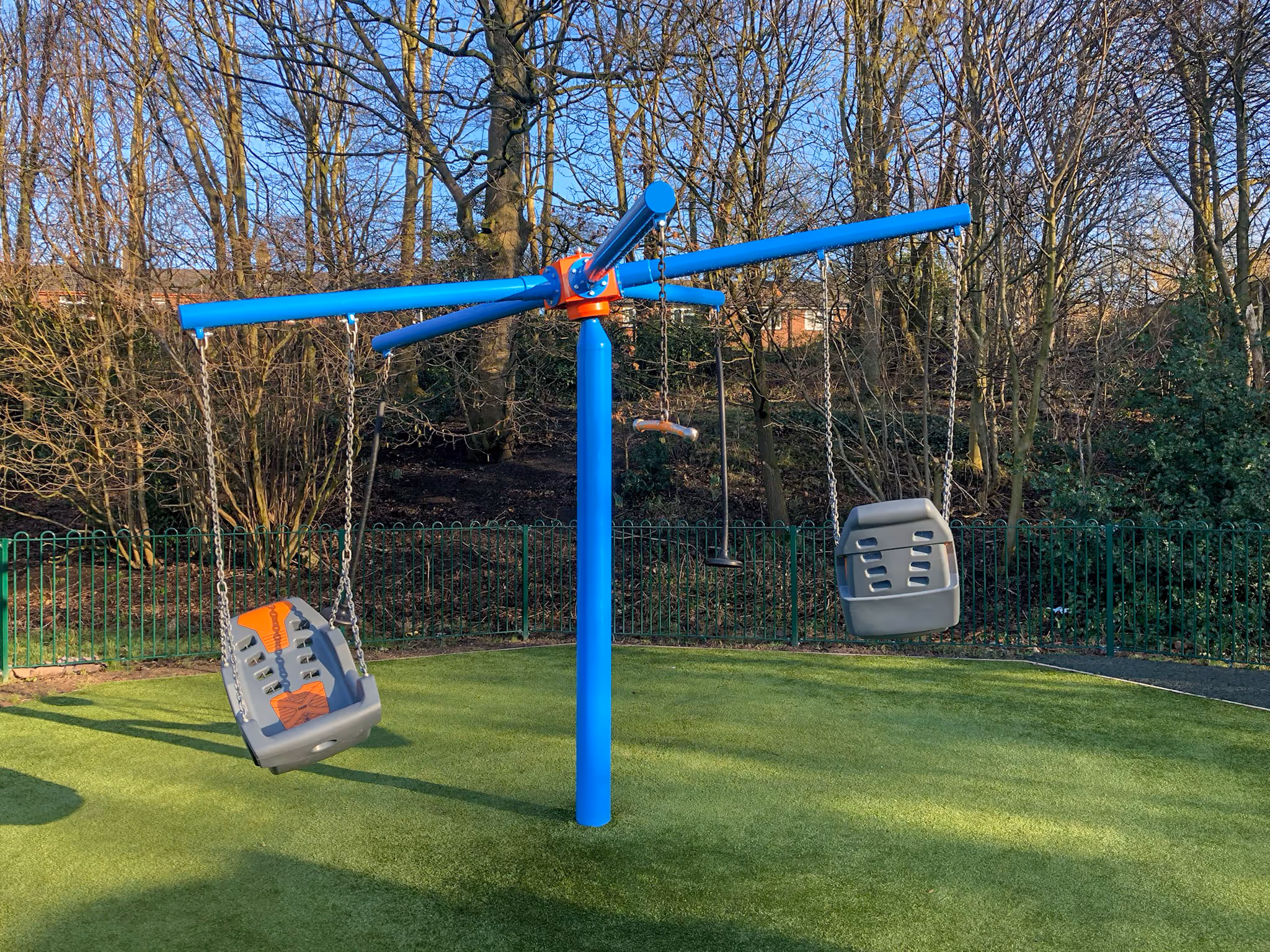 We complemented the rest of the scheme with our Revolver Swing and a 2.4m Double Bay Swing.