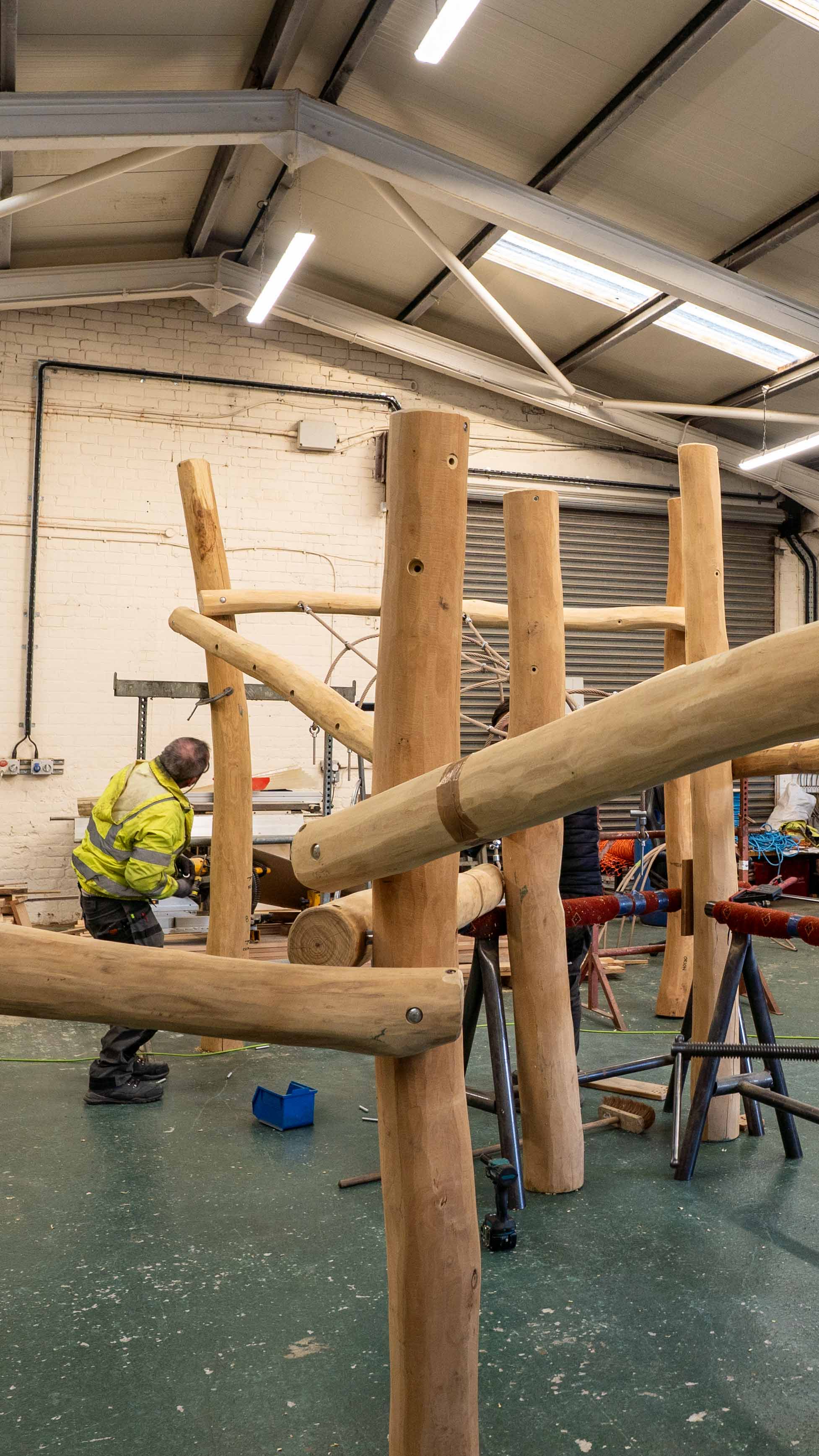 Every element of the Jodrell Bank playground was designed, fabricated and installed by our in house team. Working with Robinia allowed us to create sculptural forms that celebrate the natural character of the timber while delivering durable, safe and engaging playground equipment.