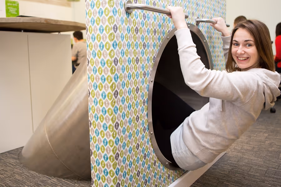 A unique slide in the Liftshare office, engineered to add joy and movement through the workplace.