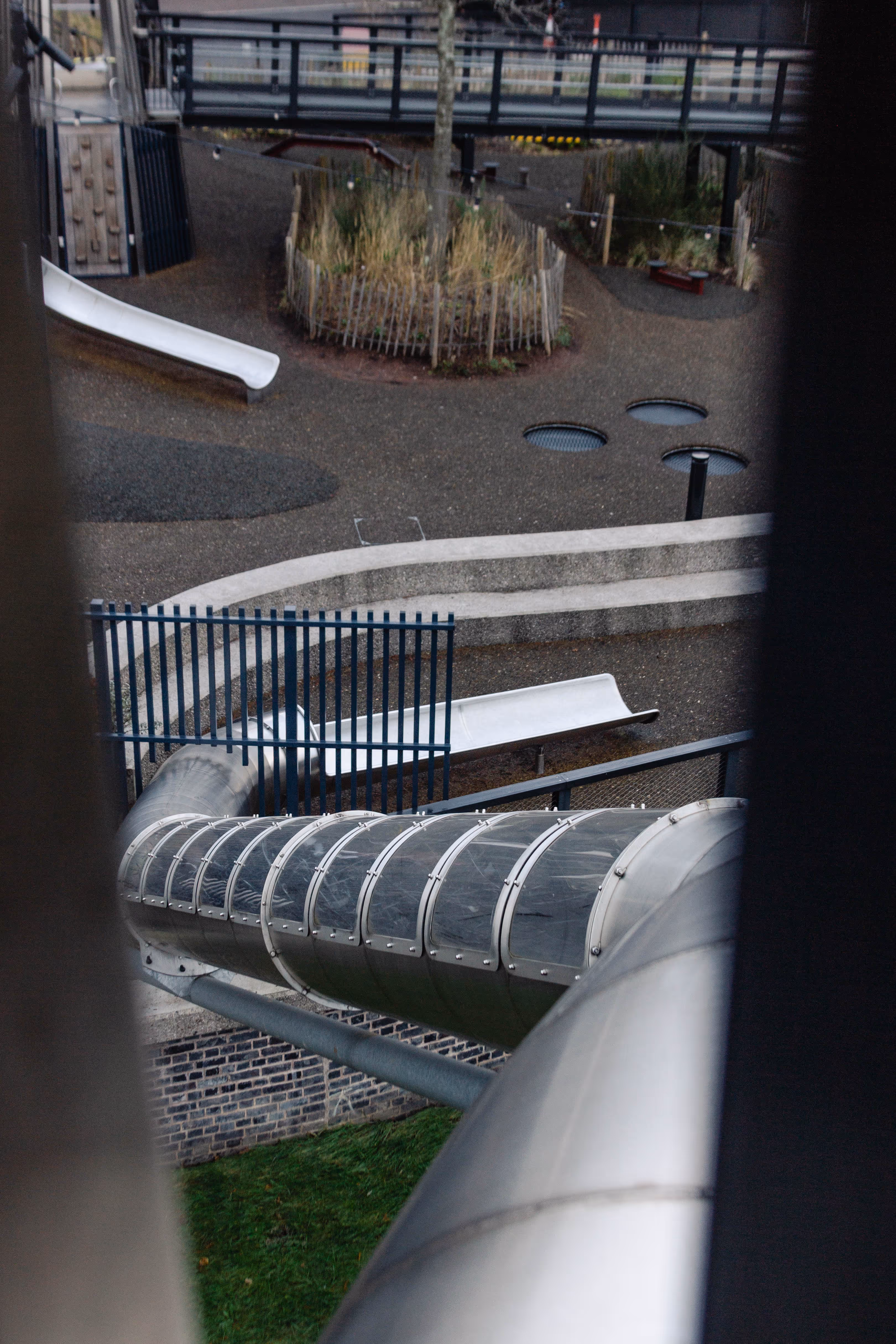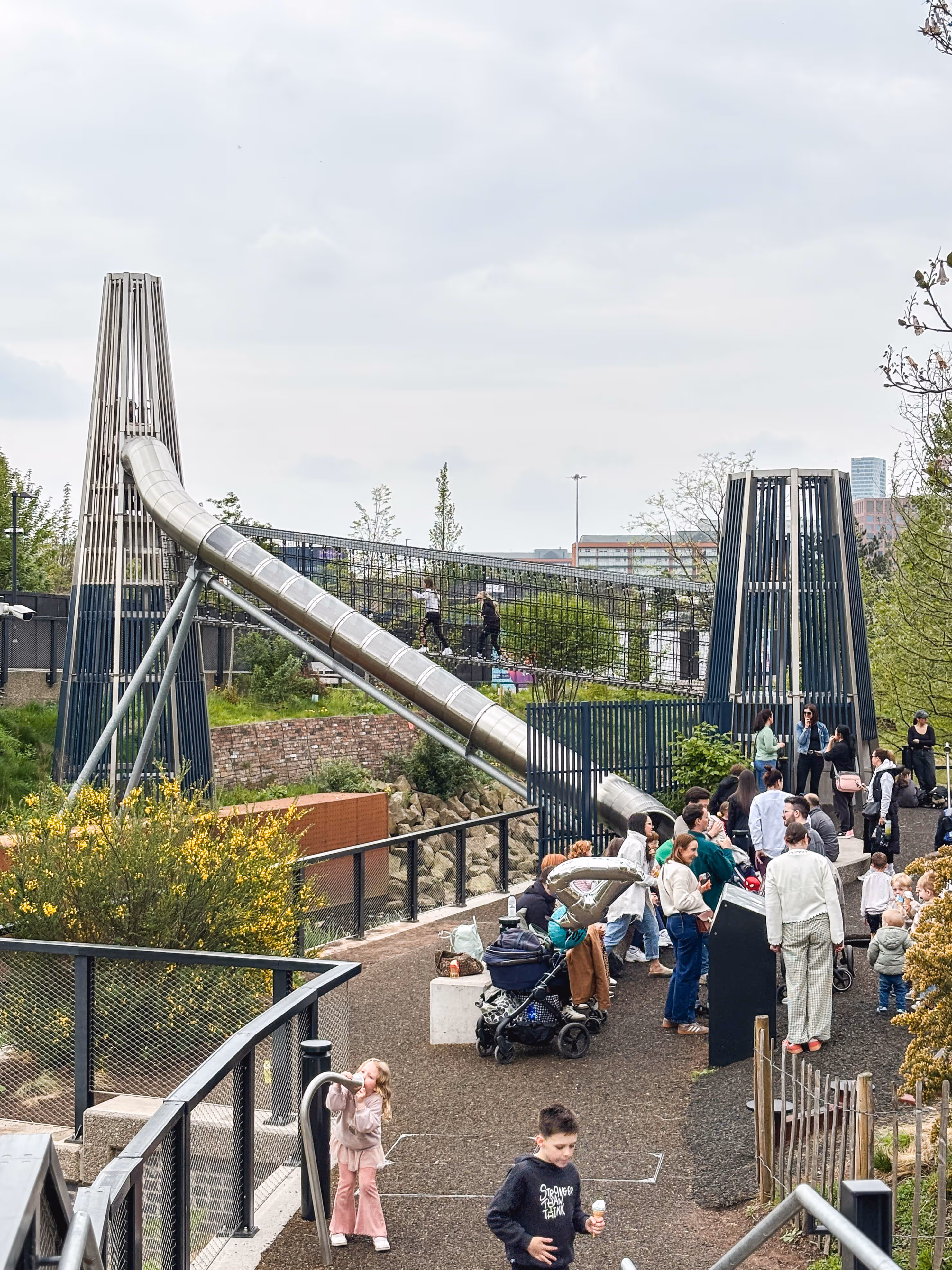 At the heart of the playground is a dramatic tunnel slide that crosses the newly revealed River Medlock. With a windowed section suspended over the water, it delivers a uniquely thrilling ride and a striking visual statement.