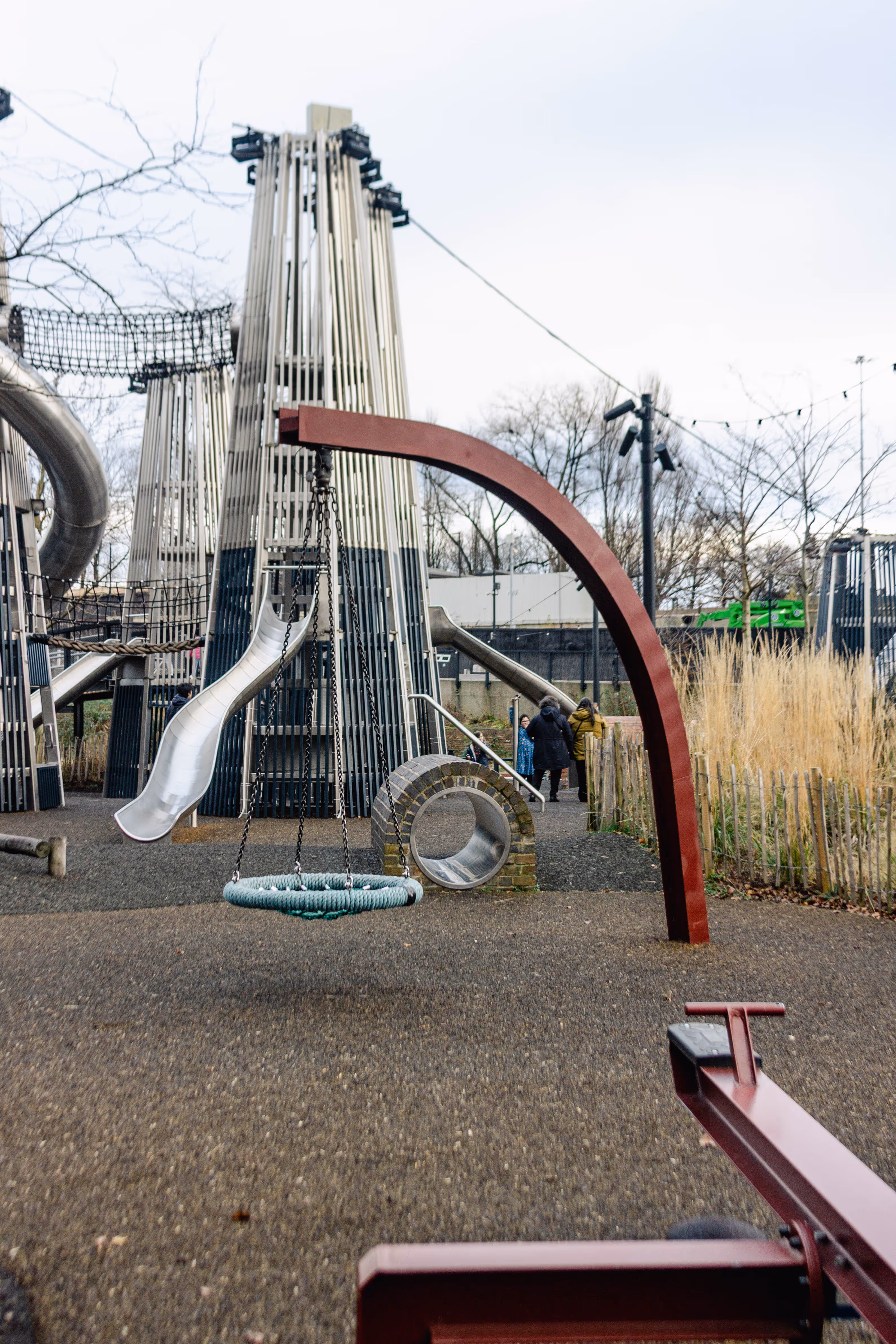 Drawing inspiration from the foundations of octagonal chimneys uncovered on site, we developed six bespoke stainless steel towers. Each tower is connected by a network of rope bridges, crawl tunnels, and a variety of exciting play features, offering a truly immersive experience for children of all ages.