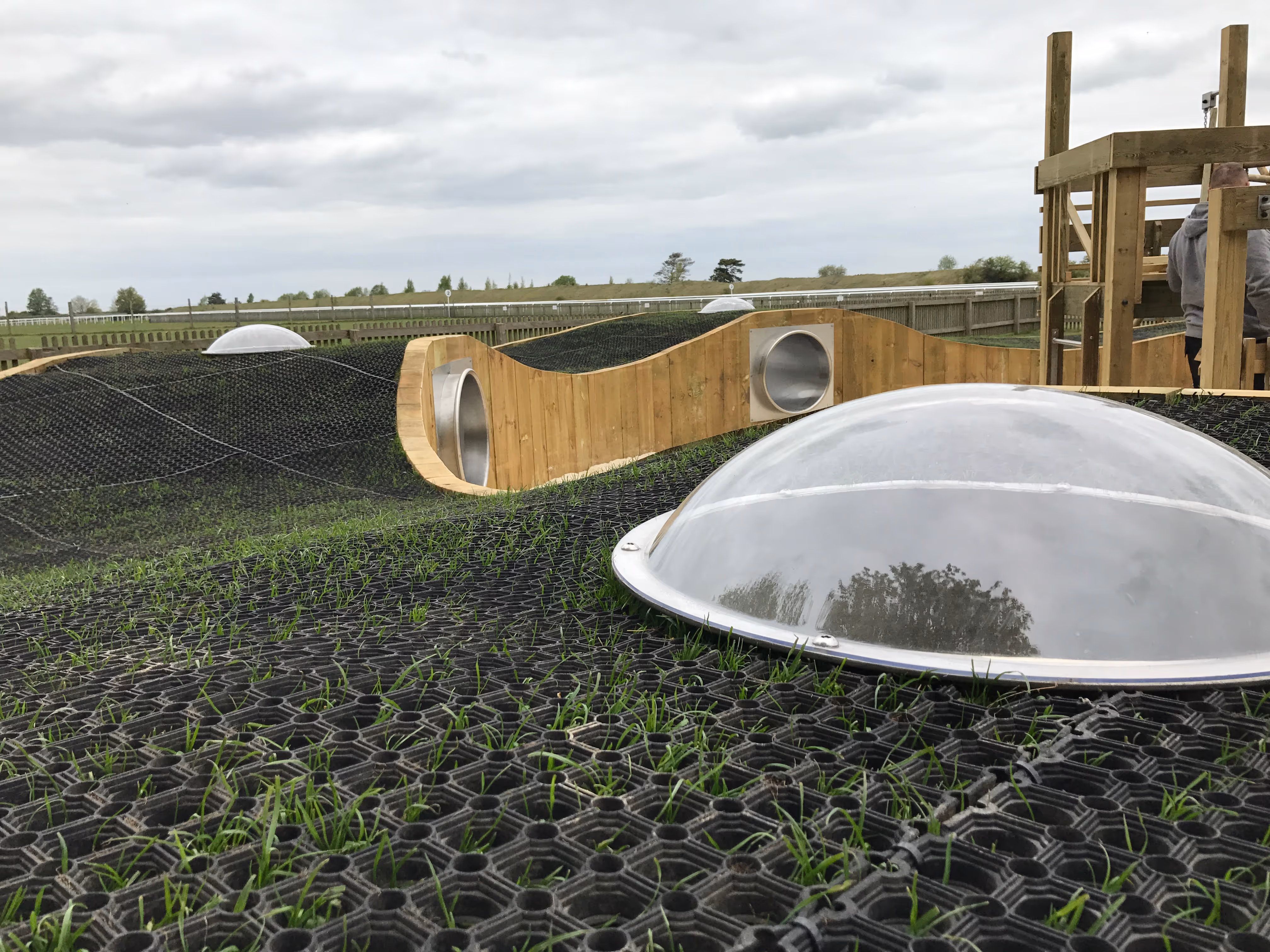 Working with Forma Landscapes for The Jockey Club, we created a natural, high-quality play area to enhance the visitor experience at one of the UK’s premier racecourses. The centrepiece is a striking multi-level tower combining timber and stainless steel, complete with climbing wall, scramble net, a 2.4m trough slide, and a dramatic 3.6m double-bend tunnel slide.