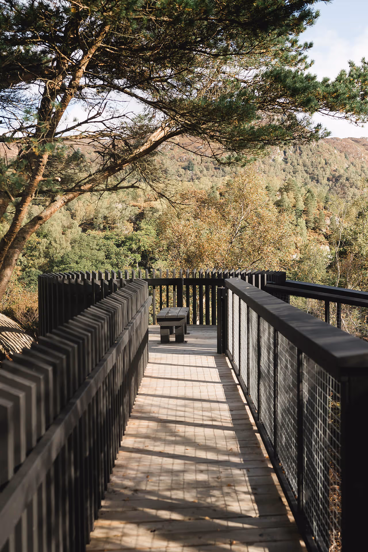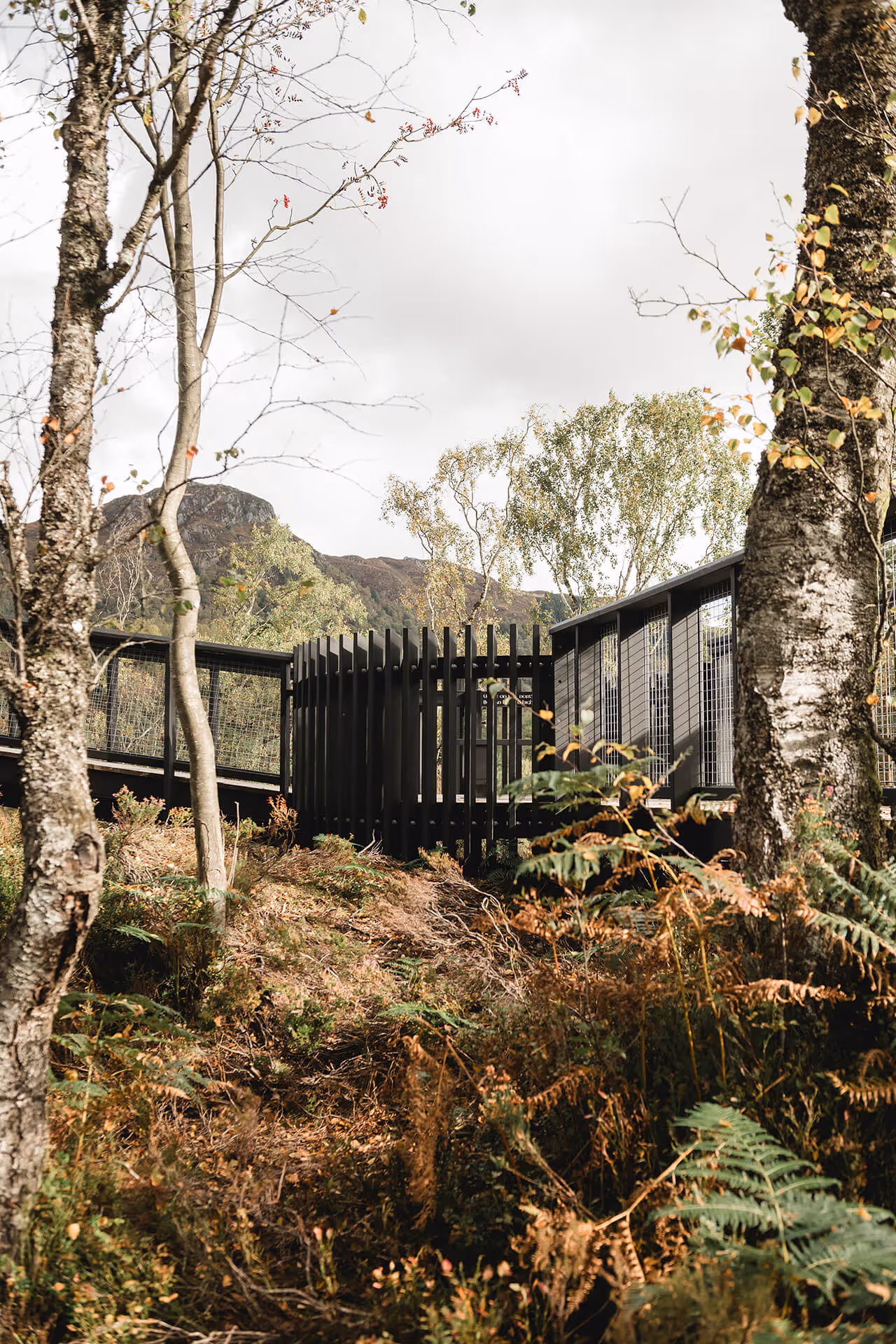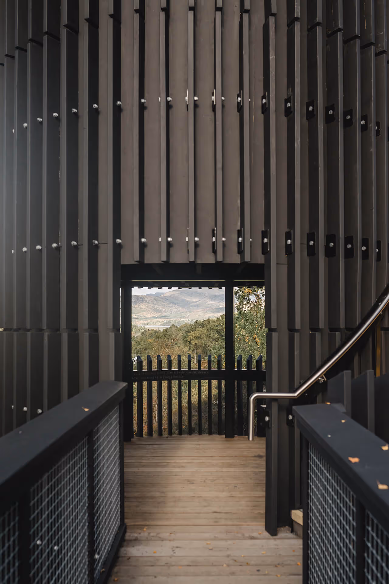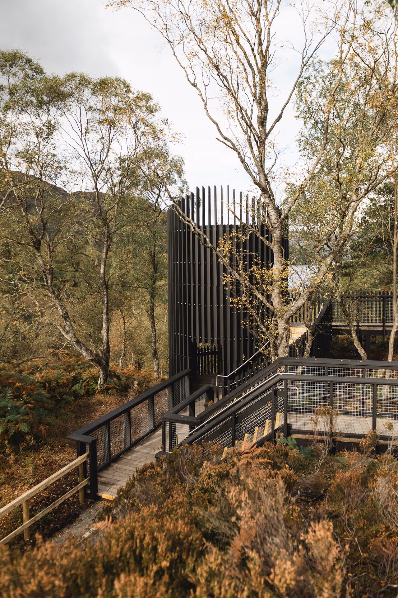 The result is a one-of-a-kind lookout that feels as timeless as the landscape itself. Clad in rich, stained timber that echoes its surroundings, the tower offers visitors sweeping panoramic views across Loch Katrine and beyond.
