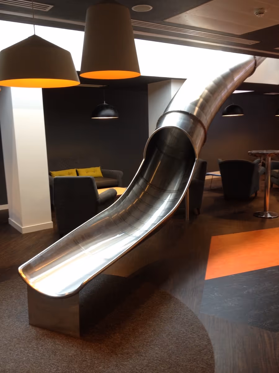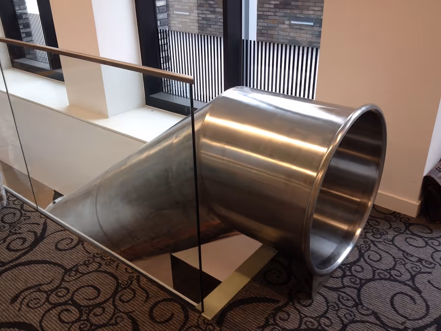 Ticketmaster’s Head Office in London asked us to design a slide from a mezzanine level down to ground level. With a polished finish and a gentle 30° bend, the design complements the office’s architecture and adds a striking, sculptural element to their meeting area.
