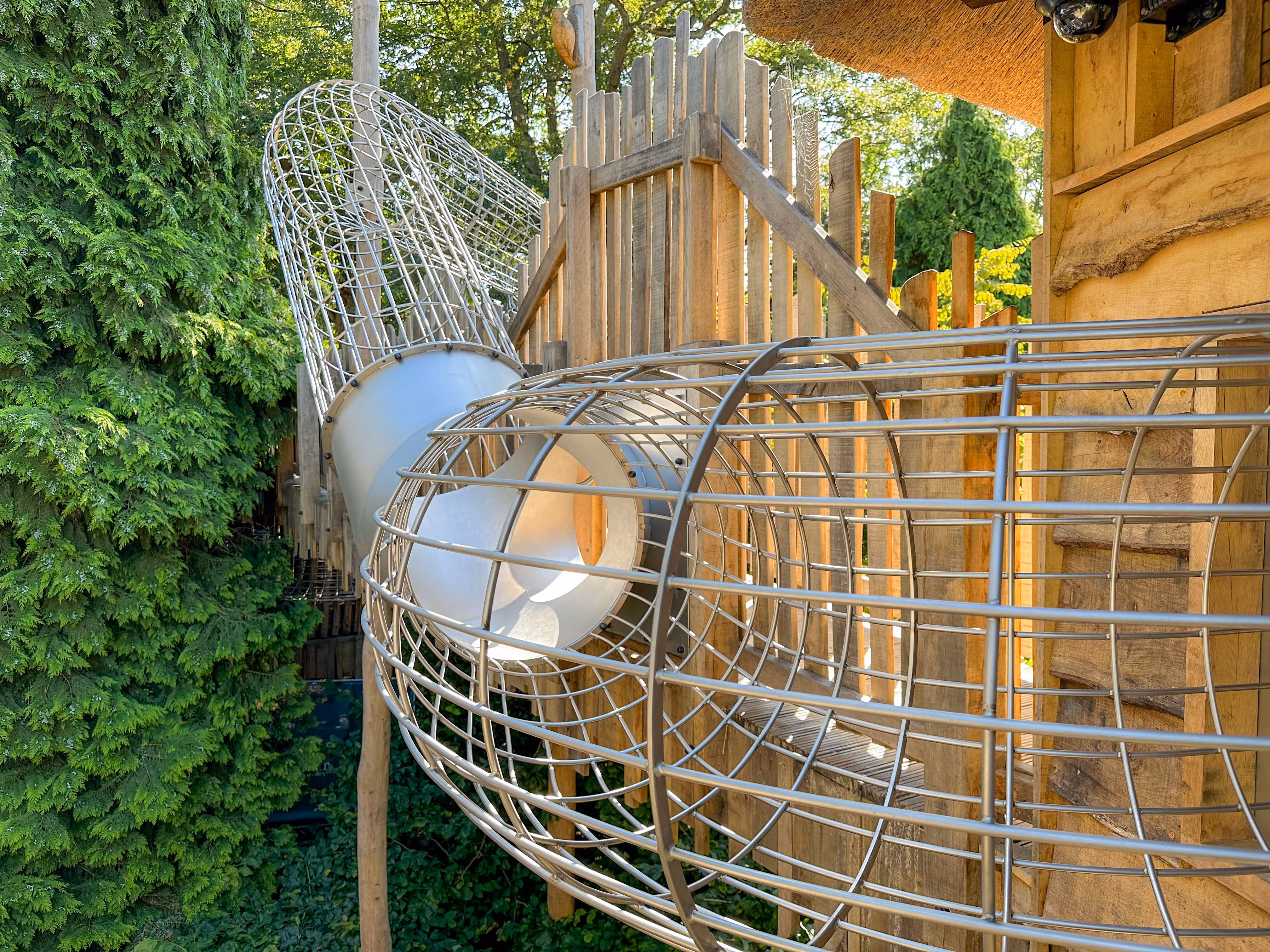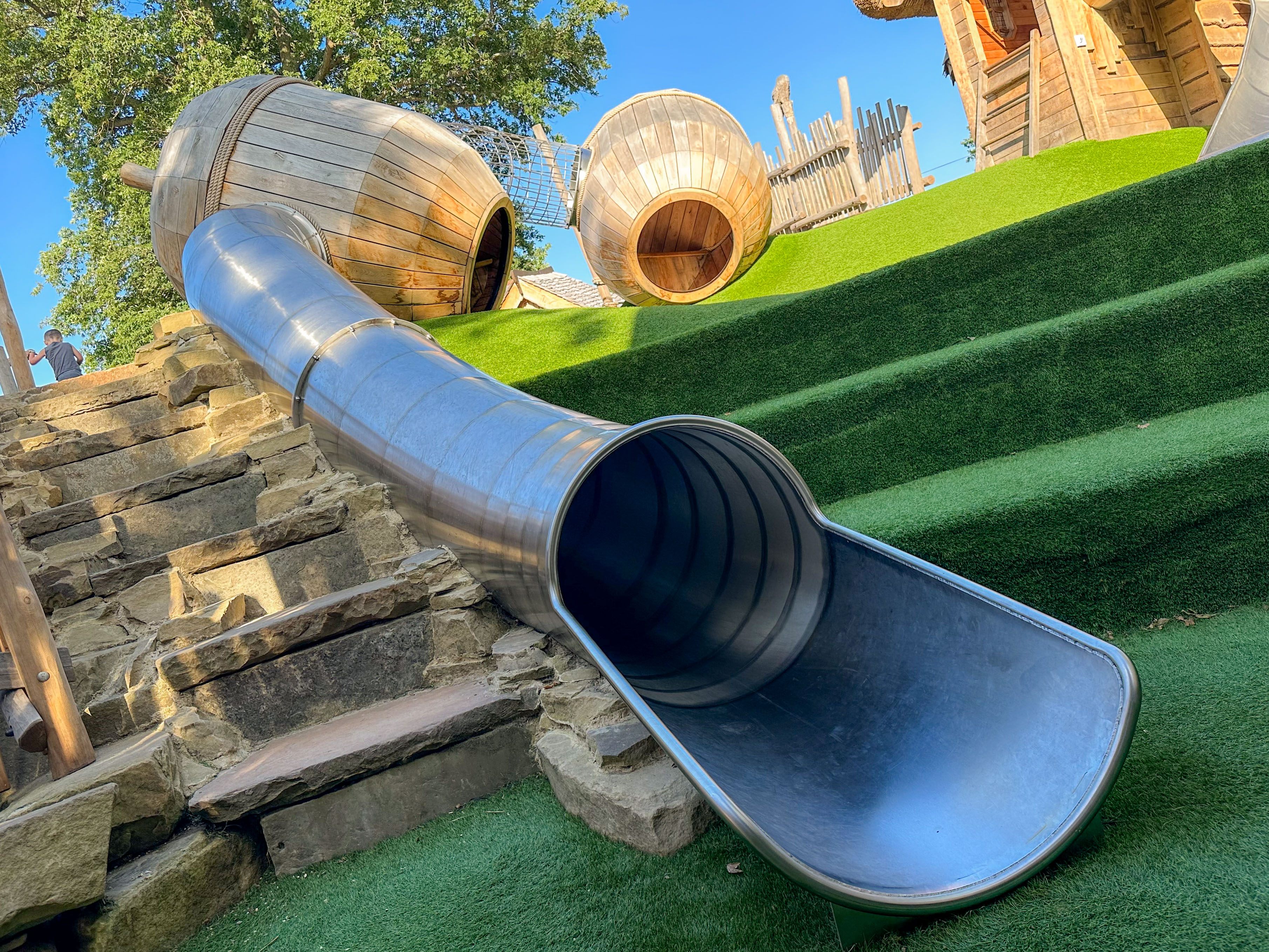 In addition to the structural steelwork, we designed and manufactured 15 bespoke slides and crawl tunnels, including a roller slide, which was a first for us and posed an exciting engineering challenge! Every element was crafted with precision to ensure safety, durability, and seamless integration with the surrounding landscape.