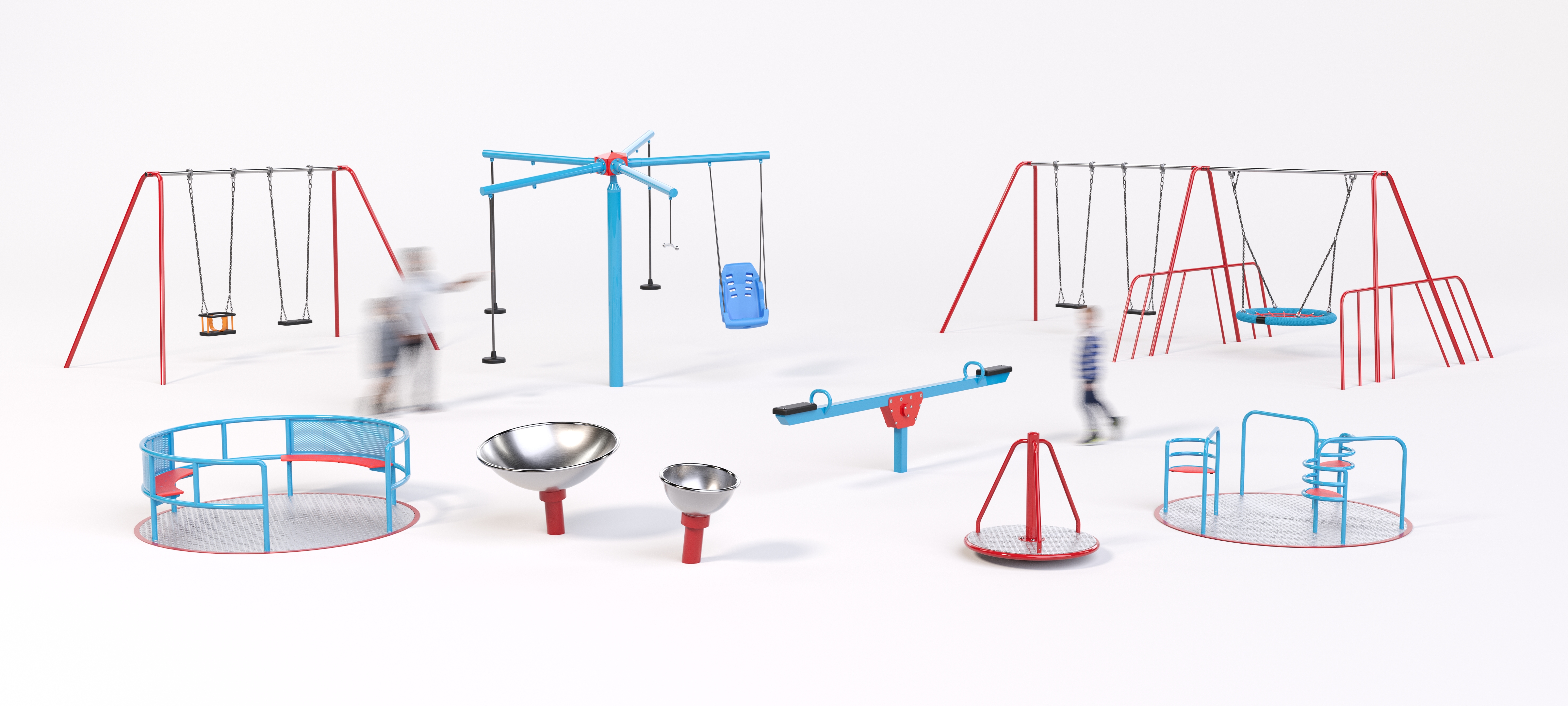 2.4m Single Bay Swing; Wheelchair Accessible Roundabout & 1.0m Spinning Bowl